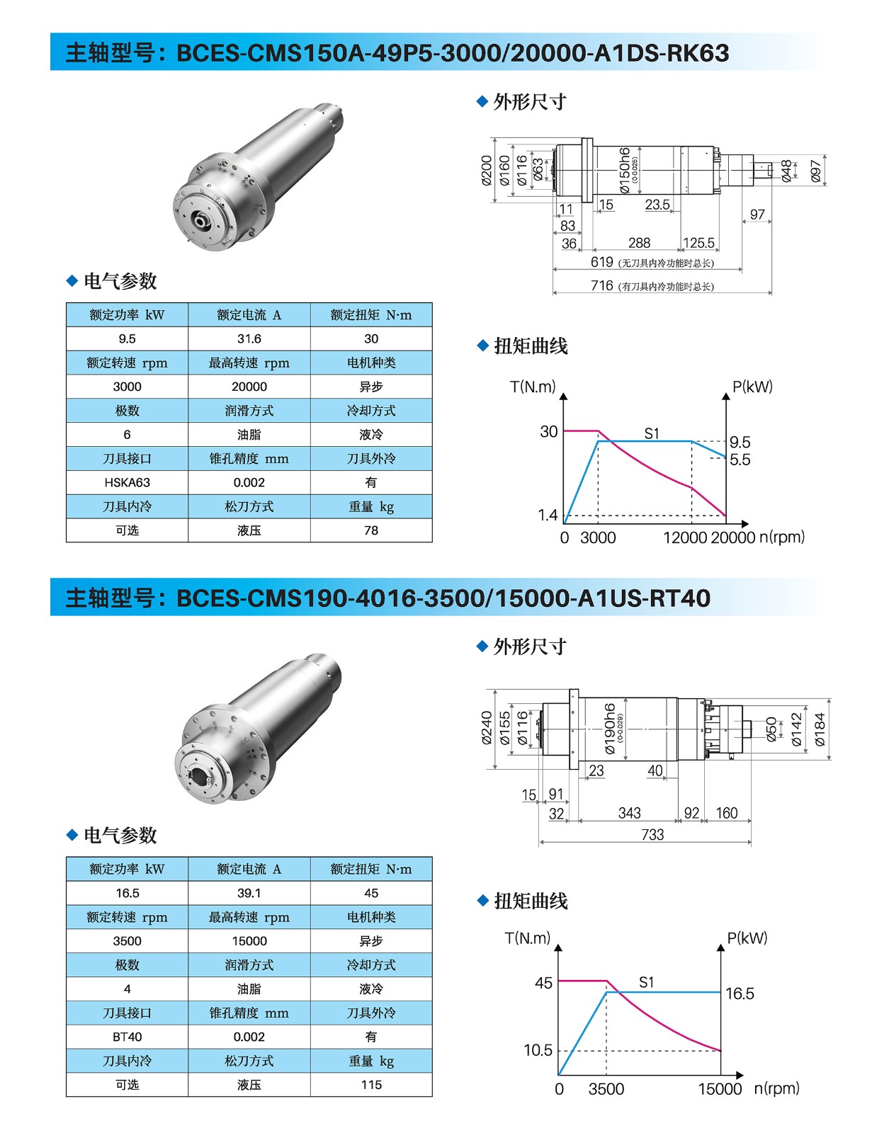 【概要描述】主轴与电机一体化设计,结构紧凑、节省空间、易于维护。无中间传动环节,效率高、振动小、噪声低。高精度、高转速、高动态响应性。