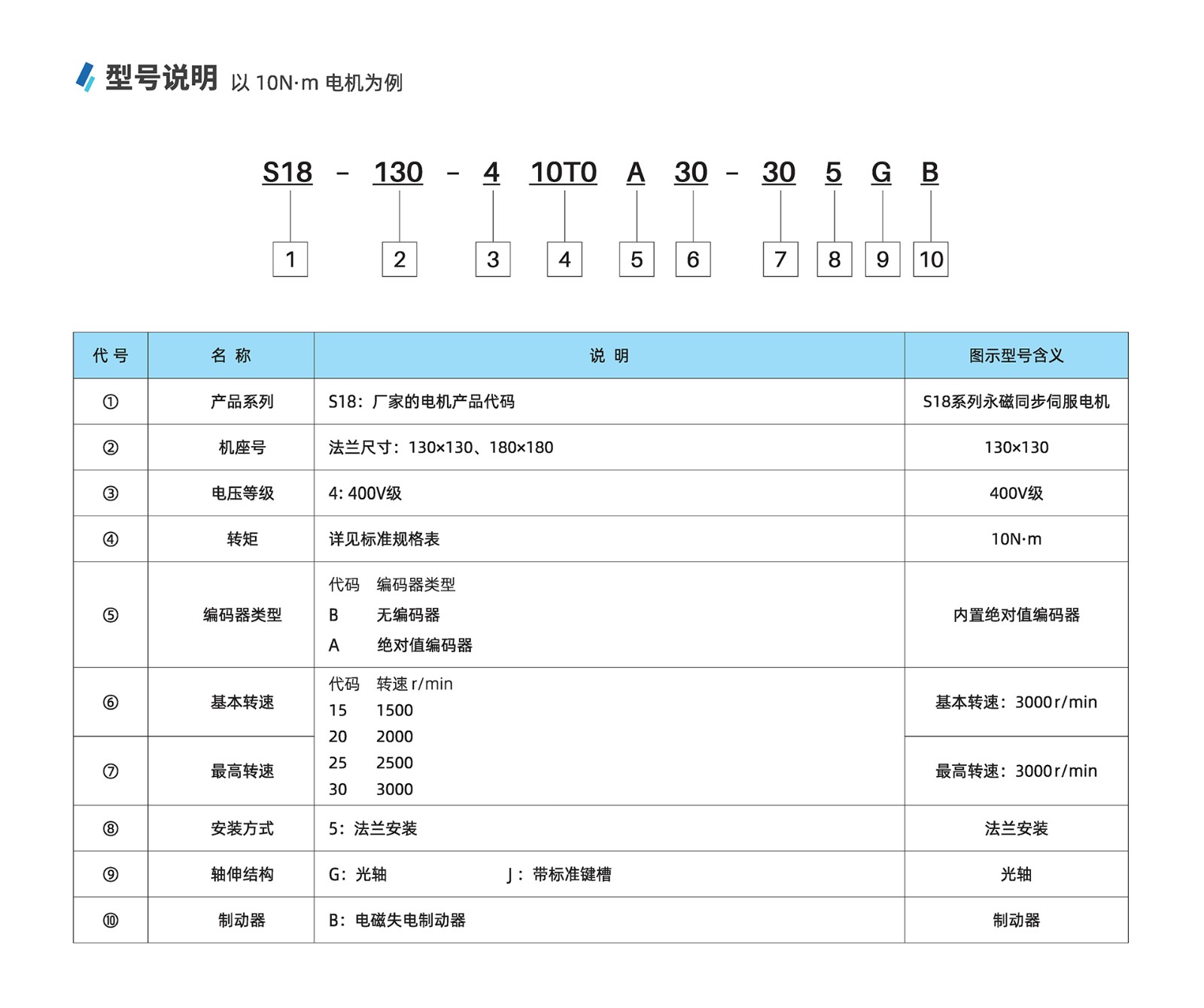 【概要描述】电机内置高分辨率、智能编码器,内置标配23bit绝对值编码器,低脉动转矩,优化的电磁结构设计。